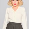 Our Andra Plain Blouse is a 1940’s inspired fitted style that’s perfect for office looks or nights at the pub quiz! Pair with one of our pinafores or a pencil skirt and cardigan for a sweet layered look.