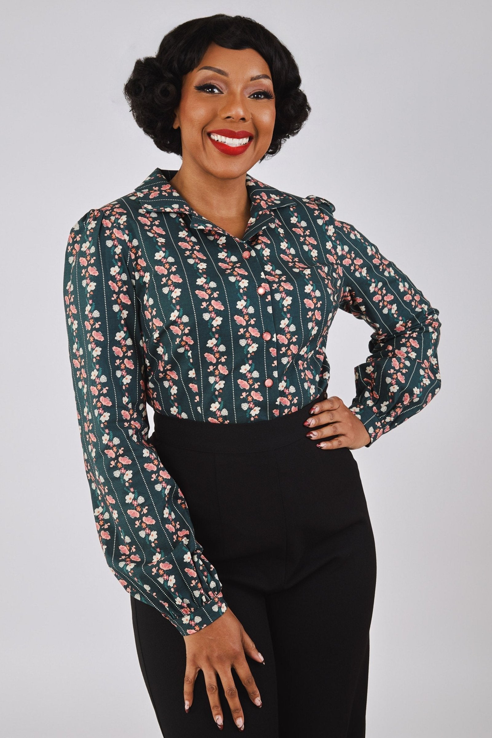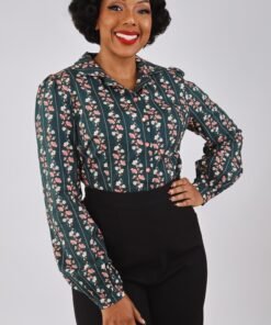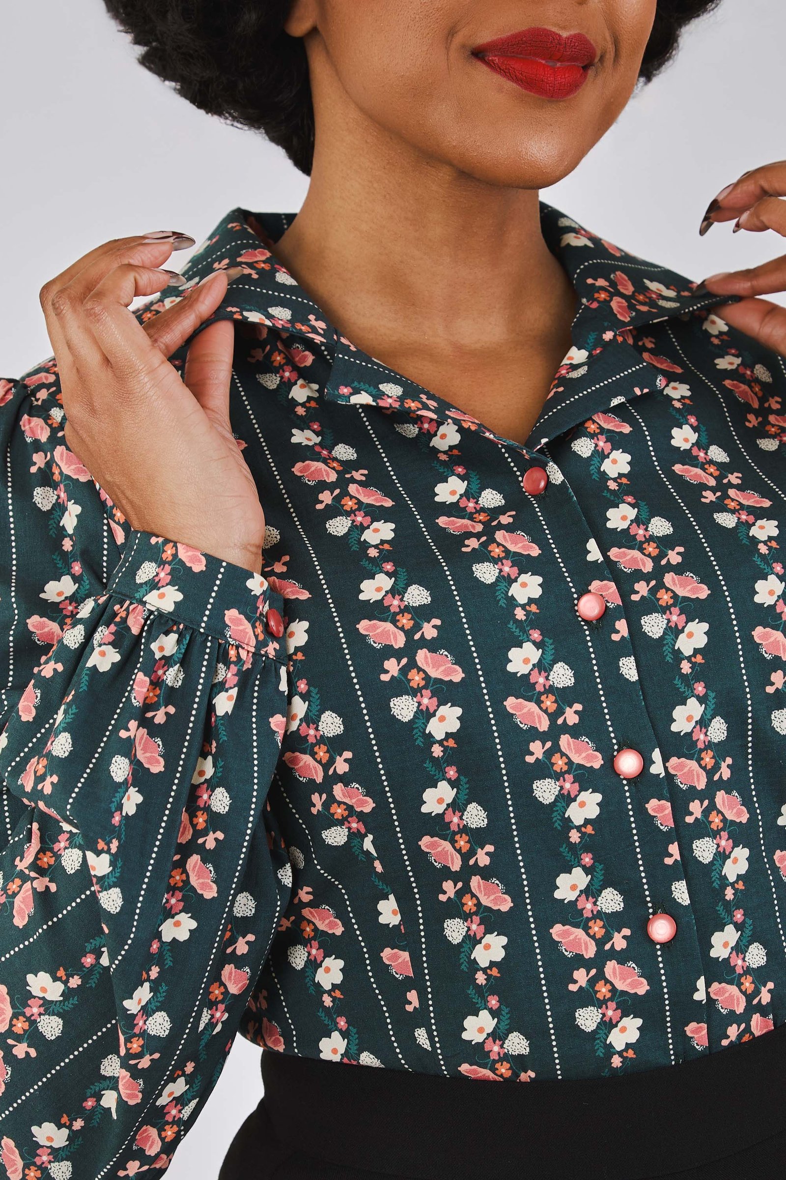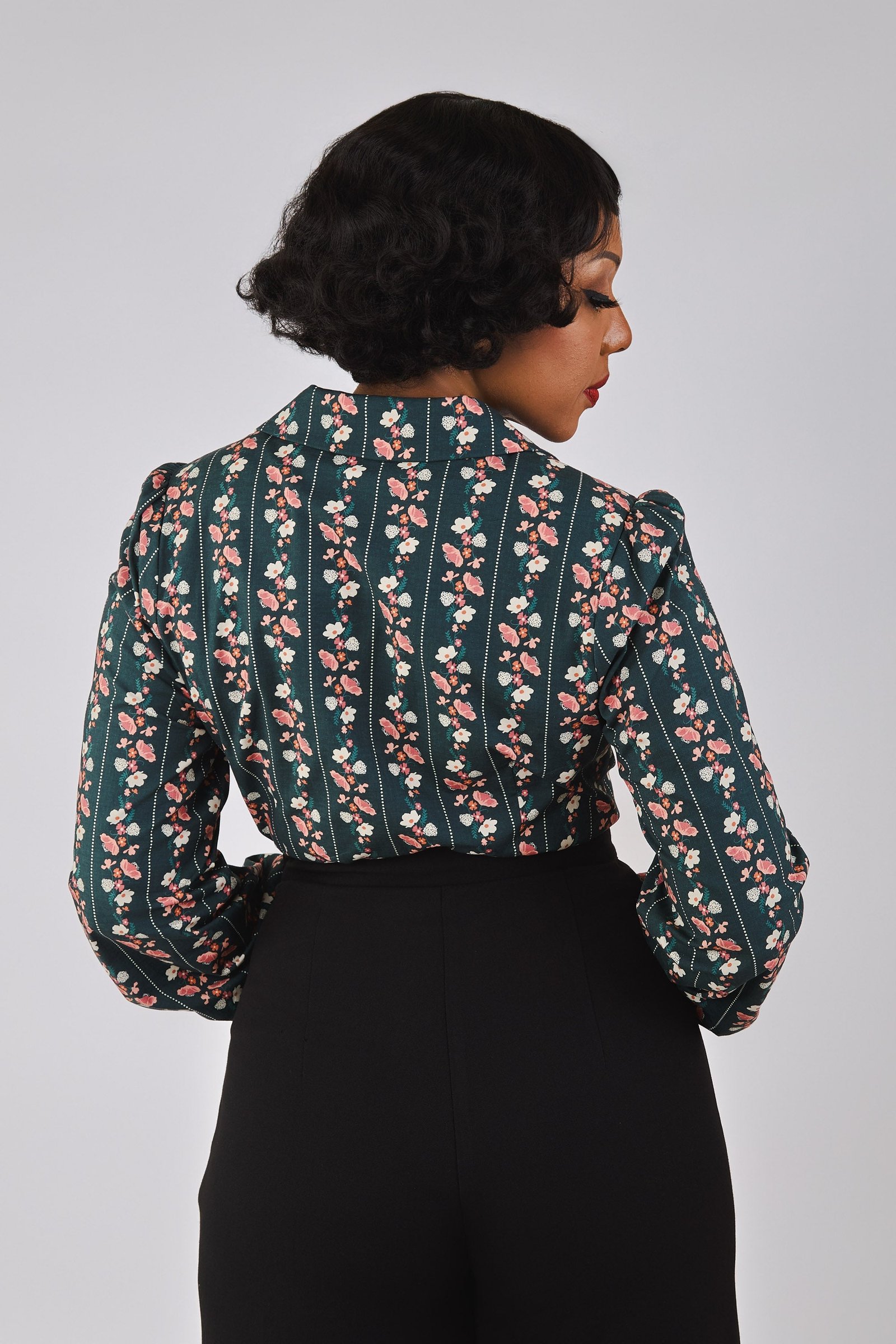 Get the bishop sleeve look with the new Jerry Wallflower Blouse. This stunning vintage inspired floral number is perfect paired with wide leg trousers or wiggle skirts